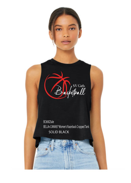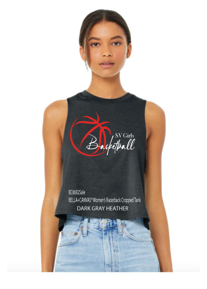 Cute racerback top! Apparel will have red and white ink (same logo as all apparel). Please look at images below to see style numbers. Available in black or dark heather gray.